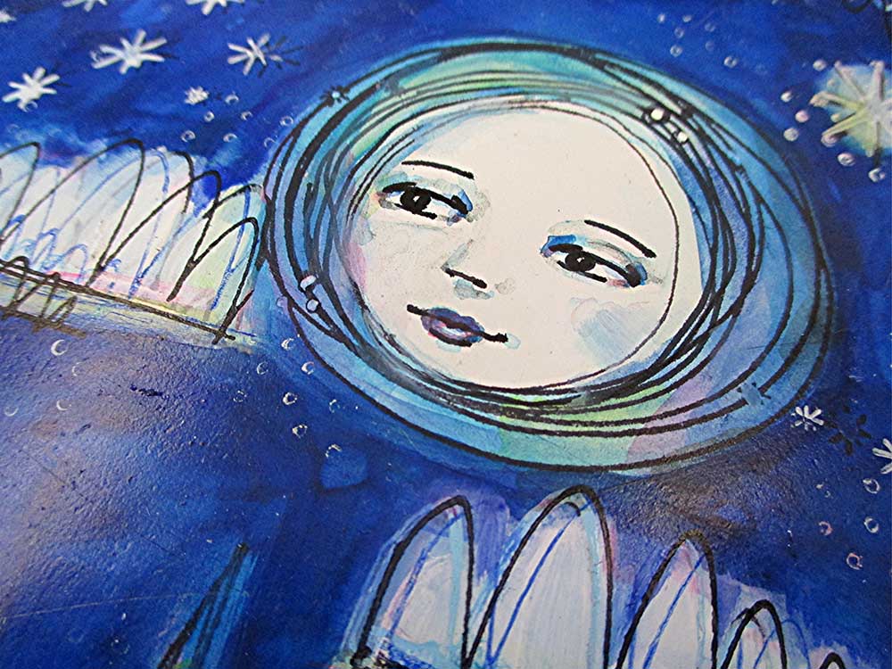 Pea, owner of RubberMoon Art Stamps, was surveying the scene with a big grin on